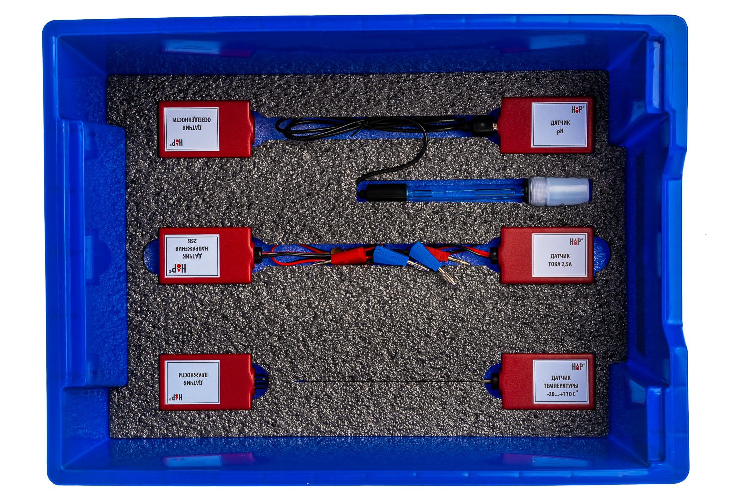 Цифровая лаборатория (за исключением микроскопа, набора препаратов, набора лабораторной оснастки и цифровой видеокамеры) укомплектована в пластиковую систему хранения, которая закрывается прозрачной пластиковой крышкой на защелках для обеспечения наблюдения за содержимым. Комплект оборудования и датчики в системе хранения располагаются на ложементе.
