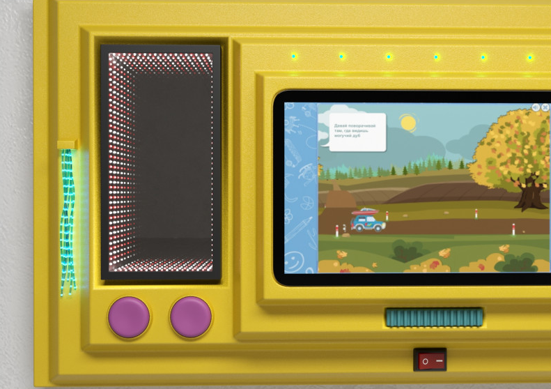 Перед вами отличный развивающий интерактивный детский комплекс, который сможет удивить и порадовать ребят обилием своих возможностей! Что же вы сможете увидеть на этой замечательной панели солнечного цвета? Например тут есть фибероптические волокна, которые светятся очень четко и ярко. Такие волокна видны даже при полностью освещенном помещении! Они помогут развить у ребят зрительную память, а также смогут снимать у детей стресс. Модуль бесконечность - еще одно открытие! Он сможет порадовать малышей самыми разнообразными яркими цветами и красивыми эффектами. Модуль реагирует на звук и в зависимости от его интенсивности меняют свой цвет. Так у детей может развиваться голос и зрительная память. Специальная панель с различными на ощупь поверхностями поможет слабовидящим детям развить сенсомоторную чувствительность пальцев. Также для развития чувствительности тут есть тактильная ребристая кнопка и барабан с маленькими неострыми шипами. А для развития логопедических навыков и мышления в центре панели расположен специальный интерактивный планшет с множеством веселых игр. Все игровые элементы на панели изготовлены качественно и на долгие года работы. Разнообразие игр и упражнений не оставит равнодушным детей и панель “Мир веселья” подарит малышам массу положительных эмоций.