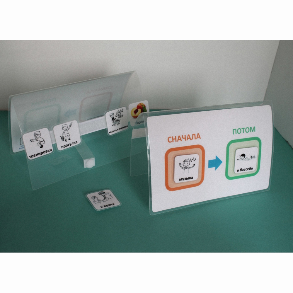 "Сначала-Потом" — это визуальное отражение двух пунктов: что мы делаем сначала и что мы будем делать затем. Эти два пункта могут изображаться с помощью двух фотографий, двух картинок, двух объемных предметов или описываться с помощью текста.