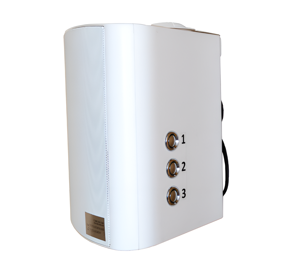 Базовый блок воспроизводит 3 разных информационных сообщения, которым соответствуют 3 кнопки на браслете-активаторе.