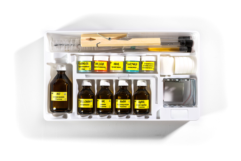 Работа с набором не требует никаких предварительных знаний по химии. А тем, кто уже начал изучать химию в школе, она будет неплохим подспорьем.