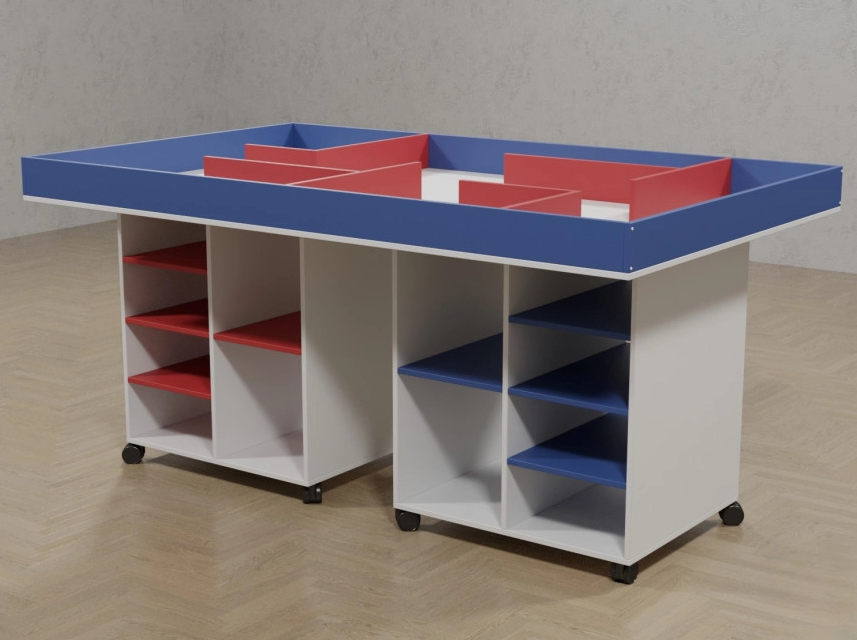 Представленный стол предназначен для специализированных учреждений, которые проводят с детьми занятия по программе раннего конструирования. Также данный стол может быть использован для кружков по робототехнике в школах или детских садах, для занятий в реабилитационных и коррекционных центрах.