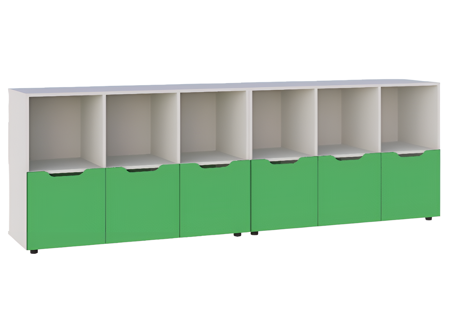 Стеллаж модульный Tengri состоит из открытых полок и выдвижных ящиков. Оснащен пластиковыми регулируемыми ножками.