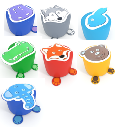 Бегемот , Волк, Заяц, Крокодил, Лиса, Медведь, Слон, Полянка , Коровка , Арбуз , Мячик , Ромашка , Мышка , Кот , Божья коровка , Щенок , Пчёлка и т.д.
