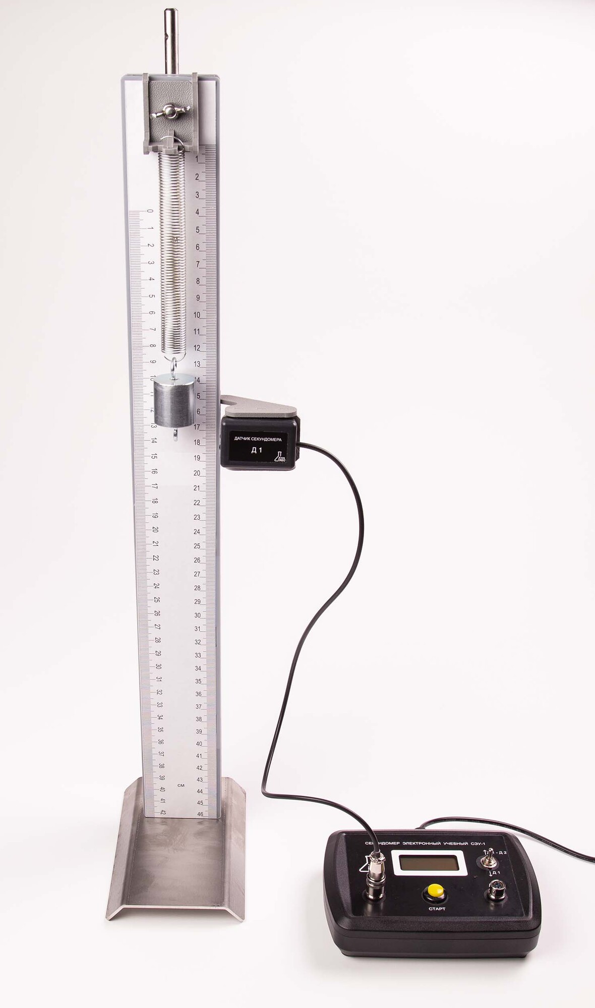 Комплект позволяет измерять ускорение и среднюю скорость движения бруска по наклонной плоскости; частоту и период колебаний математического и пружинного маятников, а также исследовать зависимости ускорения бруска от угла наклона направляющей; периода (частоты) колебаний нитяного маятника от длины нити, периода колебаний пружинного маятника от массы груза и жесткости пружины, и независимости периода колебаний нитяного маятника от массы груза.