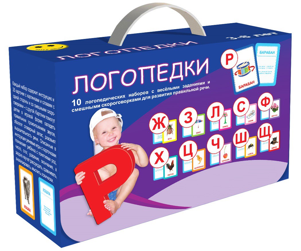 Логопедка "Р", 30 двухсторонних карточек с картинками и скороговорками, чистоговорками и стихами на оборотной стороне каждой карточки