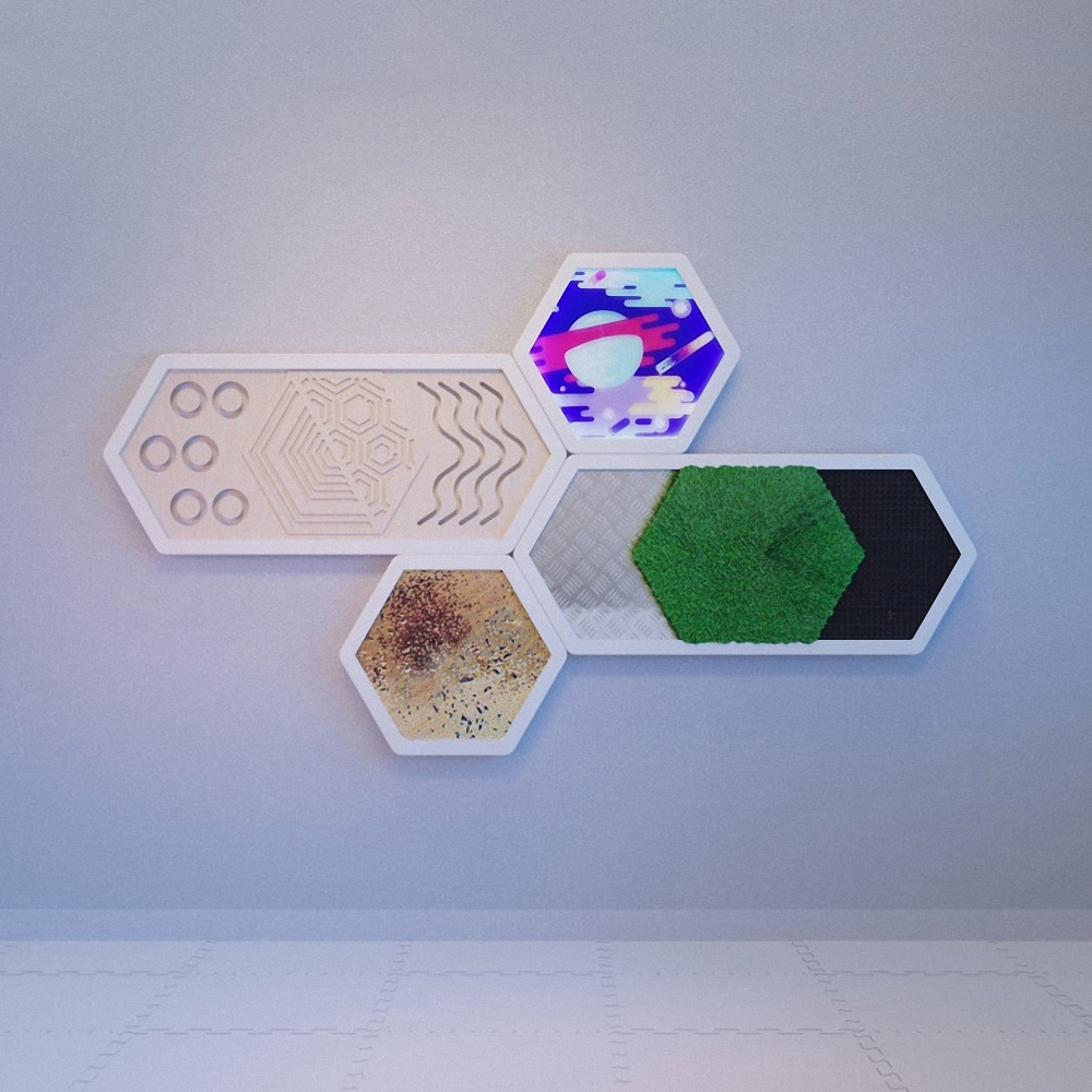 Это декоративные настенные модули, покрытые различными материалами и рельефами, для развития сенсорных систем малышей: зрения, осязания, слуха.