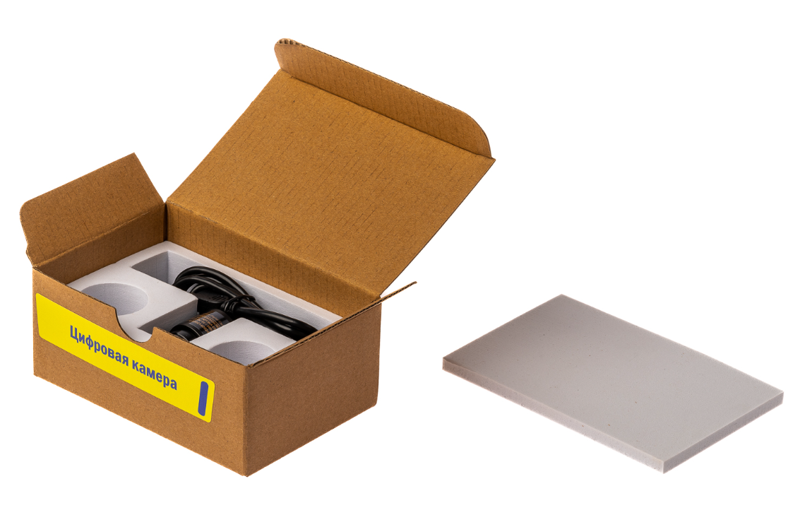 Микроскоп и цифровая видеокамера имеют отдельные упаковки.