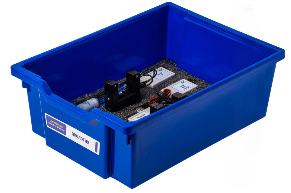 Цифровая лаборатория укомплектована в пластиковую систему хранения, которая закрывается прозрачной пластиковой крышкой на защелках для обеспечения наблюдения за содержимым. Комплект оборудования и датчики в системе хранения располагается на ложементах.