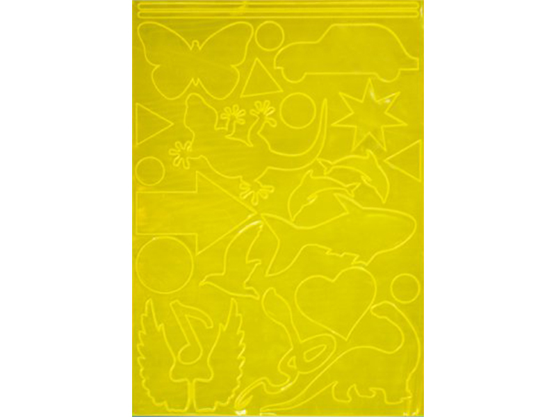 Световозвращающие наклейки представляют собой плоские фигурки разной формы со световозвращающим покрытием желтого цвета, которые можно клеить на одежду, сумки и другие предметы. Наклейки размещены на листе формата А4.