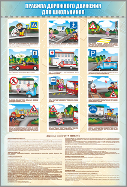 Стенды представляют собой информационные панели, на которых размещены правила дорожного движения для школьников как юных участников дорожного движения.