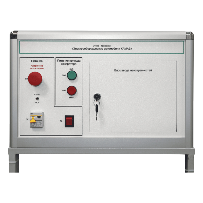 Стенд-тренажер предназначен для изучения электрооборудования автомобиля КамАЗ, отработки навыков поиска и устранения типовых неисправностей, которые возникают в процессе эксплуатации автомобиля, техническому обслуживанию и ремонту автомобиля, получению навыков по диагностике неисправностей электрооборудования.