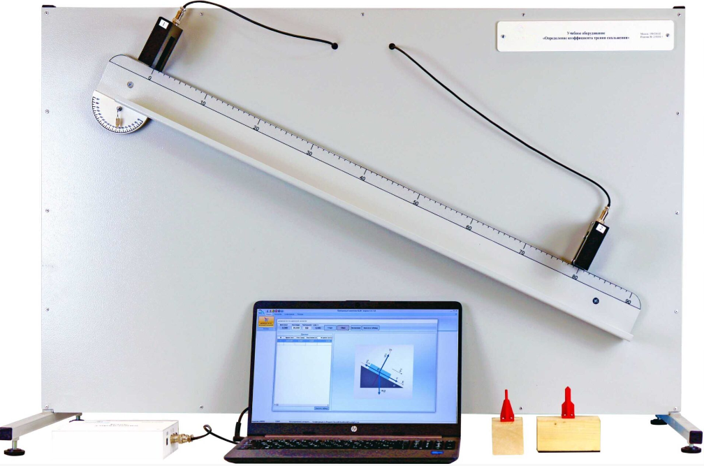 Установка позволяет провести эксперименты по изучению сухого трения методами определения коэффициента трения скольжения; расчета коэффициента
